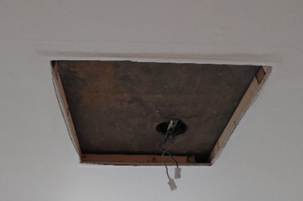 4) 합판이나 석고보드에 등기구를 설치합니다. (세로 각목에 힘 받게 달면 좋아요)