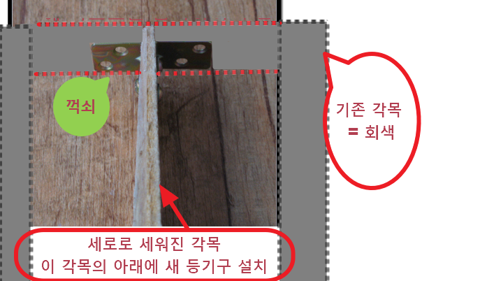 1) 세로 각목(널빤지) 고정한 다음 (꺽쇠사용)